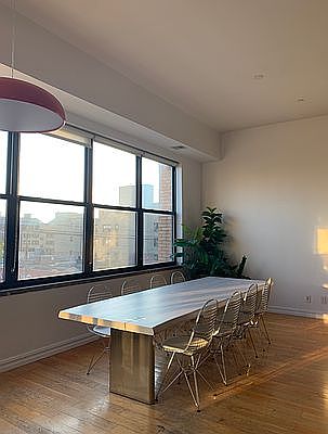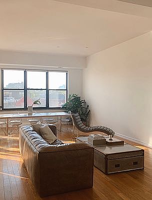 Gorgeous true loft with 12ft ceilings and tons of south facing light. Just a few steps away from the L train at Dekalb this condo boast that coveted loft layout everyone looks for. There are 2 full bathrooms, one having a bathtub, and the other a shower. This spacious loft feels larger than it's square footage due to the high ceilings and oversized windows. The modern elevator is spacious and makes moving furniture in and out simple. The roof deck is quaint with a deck and artificial grass that shows off a clear view of the Manhattan skyline.