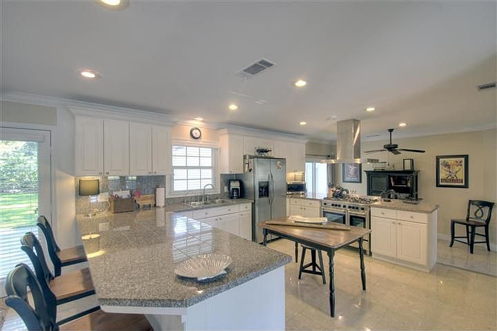 Over 2800 square feet of FAB space and finishes. You need to see this to appreciate how well done the space is. Bright and open with floor to ceiling windows, a large gourmet, eat in kitchen and family room with fireplace, beamed ceilings, split bedroom plan, gracious master that opens to the back patio and also features a large master bath with custom cabinetry. Outside is a built in kitchen and a large back yard with room for a pool. Brick home, beautifully renovated in a way that is timeless and current. Four bedrooms, three baths and tons of living space.