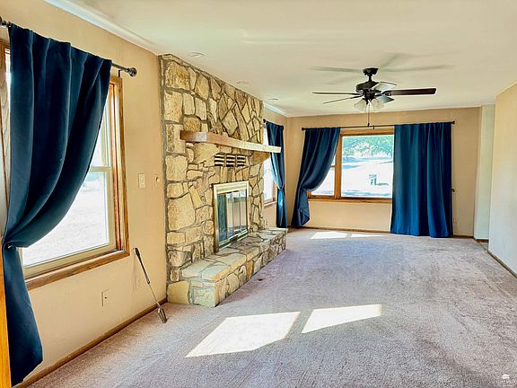Spacious two-story home featuring 5 bedrooms (one nonconforming) and 2.5 bathrooms. The updated primary suite offers a private retreat with a walk-in shower. On the main level, you will find a generous living room with a wood-burning fireplace, a convenient breakfast area, a formal dining room, a sunroom perfect for plants, and a dedicated office space. The recently finished basement expands the living space with a large family room, game room, and a nonconforming 5th bedroom with a walk-in closet that could also serve as extra storage. Several recent updates include new siding in 2024 with a 30-year warranty, many replaced windows, and a new sliding glass door. An oversized garage provides multiple access points. The inground pool was professionally removed, creating a larger, low-maintenance backyard with a spacious deck for relaxing, entertaining, gardening, or pets. Discover the space you're looking for! Contact Theresa at North Central Kansas Real Estate: 785-447-3380.