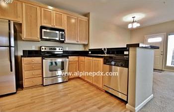 This is a lower level unit in the Elmonica Station Development, walk to MAX! Beautiful unit that includes Pergo type maple hardwood flooring. Unit also includes a spacious kitchen with granite counter-tops and pantry. Bathroom has jetted whirlpool tub and condo is equipped with CAT 5 wiring! Water, sewer and trash are included with your rent! Conveniently located close to Costco, Nike, MAX, and Tanasbourne area! Pets possible with approval, $500 additional deposit, $25 a month pet rent, one pet max. No smoking. *photos are of a comparable unit