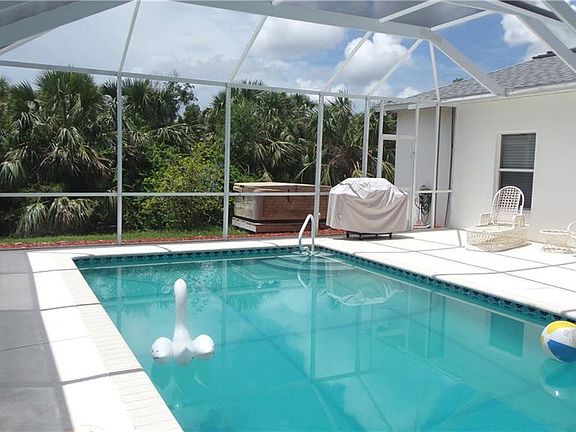 Beautiful 3/2 CBS construction with 750 sq. ft. outbuilding with two roll up doors and separate workshop area. Off of the shop there is an additional two canvas canopy enclosures for lawn equiptment, cars or general storage. There is a below ground pool, extended screen lanai and separate hot tub. The 2.73 acres is fenced and cross fenced and a gardener's delight. It is beautifully cleared and planted with numerous fruit trees and flowering shrubs and trees. Solar powered entry gate. Brand new roof! The house sits to the left side of the property with the right side being free and clear for your horses! Vacant and on keybox. The solar powered entry gate is disconnected for showings, just push on the right hand side.