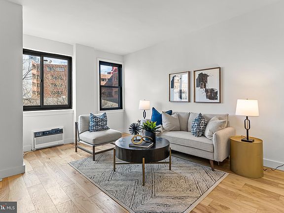 Welcome to The Swarthmore Condominiums located in the Foggy Bottom neighborhood in Washington DC. This unique, and high-end renovation maximizes usable space coupled with playing into the elegant style and history of the art deco design with a modern twist. From the moment you enter this corner unit you will find the warm natural light flooding in and showcasing the beauty of the 6" Natural White Oak flooring found throughout. Enjoy not only beautiful corner views from the living room, but that of the thoughtful details and space surrounding you, including a custom Birch paneled focal wall w/electric fireplace. The enlarged kitchen features Calcutta Tuscany Gold countertops w/ custom transition into backsplash, Black Matte Finish- Rain Dance Pull out faucet w/ Filtered water system / Pressurized Cup Washer, and stainless steel appliances. The primary bath features a freestanding 48" solid oak vanity with art deco inspired side lighting, and surrounded by elegant Spanish tiles with a glass encasement shower. The large primary bedroom offers a full walk-in closet and secondary closet for additional storage. The unit comes with glass frost paneled interior doors to allow for further light passthrough without compromising privacy. This unit offers an in-unit washer / dryer and brand new heating and cooling system.