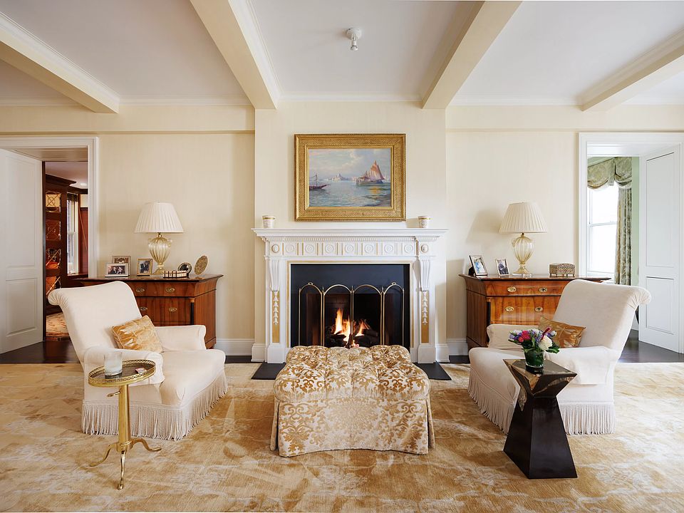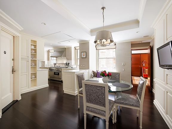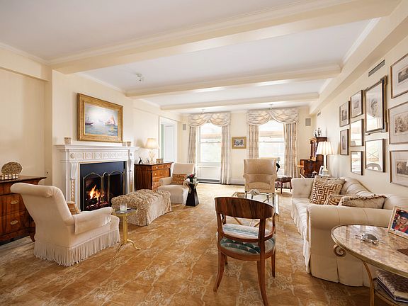 Mint and elegant 7 room home with views of the Met in one of the most prestigious co-ops on Fifth Avenue. Step into the grand, square gallery with a custom marble floor and walk-in coat closet. The gallery opens up into a massive, 30 foot long living room, with two South facing windows, beamed ceilings, and a gas fireplace framed by a beautiful mantle. Adjacent to the living room is an oversized, South facing dining room that is perfect for entertaining. The newly renovated chef's kitchen features a large eat-in area with built-in desk, and features marble countertops, Subzero refrigerator, Miele dishwasher, a wine fridge and warming drawer, and a Thermador range with six burners, a grill and double ovens. Off of the kitchen is the handsome, wood paneled library with an en-suite full bathroom. In addition there is an adjacent staff room/laundry room with a washer/dryer. The bedroom wing of the home boasts a stunning, corner primary bedroom with two West facing windows facing the Met and another window facing South down Fifth Avenue. There is a very large walk-in closet, a built in couch, and multiple built-ins for ample storage. The oversized, en-suite bathroom has a double vanity, soaking tub, built-in storage and two windows. The nearly 20 foot long second bedroom features a wall of closets and has fabulous Southern light. The bathroom in the hallway between the two bedrooms has a Japanese toilet and can either be kept as it is, or turned into a second bathroom for the primary bedroom. Additional features of this lovely apartment include central AC with multiple zones, over 9 foot ceilings, and great storage space throughout the apartment. In addition, this residence can be combined with 4BB which is a large one bedroom with 4 windows facing Fifth Avenue. This would recreate the entire original "A" line footprint. Built in 1928 by Frederick French, 1010 Fifth is a white glove cooperative located right across from the Metropolitan Museum of Art. Amenities include a 24 hour doorman, elevator attendant, Resident Manager, and a fitness center.