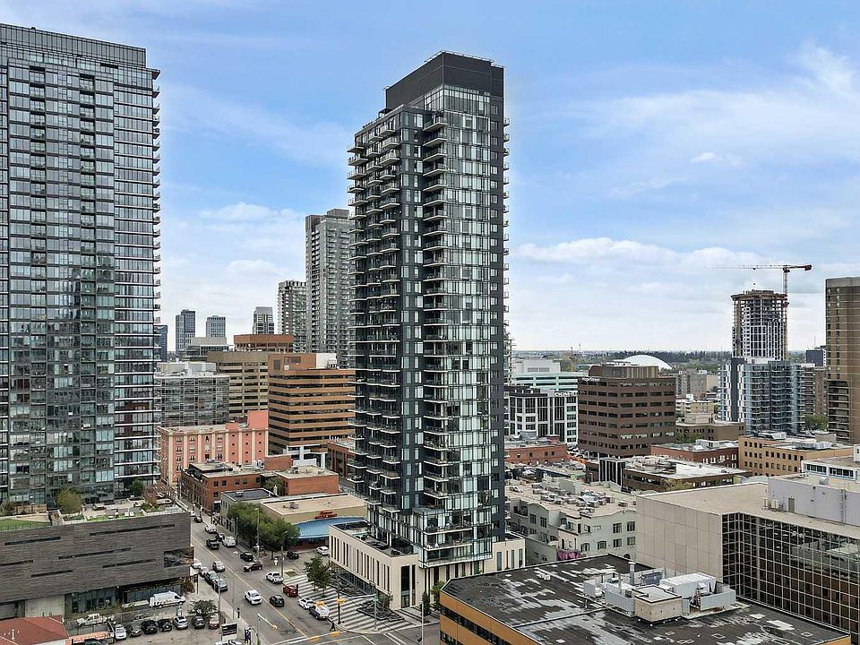 Experience the ultimate in urban living at Calgary's 6th and Tenth, situated in the heart of the vibrant Beltline district. This striking high-rise combines sleek, modern design with an unbeatable location, making it an exceptional opportunity for both homeowners and investors. With Calgary's condo market experiencing an impressive 18% year-over-year growth—and no land transfer tax—this property offers a compelling value proposition. This unit is a thoughtfully designed 415 sq ft one-bedroom, one-bathroom condo, with east-facing orientation captures breathtaking views of the iconic Calgary Tower and the downtown skyline. Floor-to-ceiling windows fill the space with natural light, creating a warm and inviting atmosphere throughout the home. The interior showcases a modern-industrial aesthetic, featuring exposed 9-foot concrete ceilings and walls that add a distinctive edge to its contemporary style. Despite its compact size, the unit is remarkably functional, with every square foot optimized for comfort and usability. Central air conditioning ensures year-round climate control, adding to the overall sense of ease and livability. Residents of 6th and Tenth enjoy access to a suite of premium amenities, including a state-of-the-art fitness center, an expansive outdoor terrace with a swimming pool, and a stylish shared kitchen and party room—perfect for entertaining or relaxing with friends. The building also allows short-term rentals such as Airbnb and Vrbo, offering additional flexibility and income potential for investors or part-time residents. Whether you're searching for a chic urban residence or a smart investment property, this unit delivers exceptional value in one of Calgary's most desirable neighborhoods. Don't miss your chance to own a piece of this dynamic and fast-growing urban landscape. Contact your real estate professional today to learn more about this remarkable opportunity.