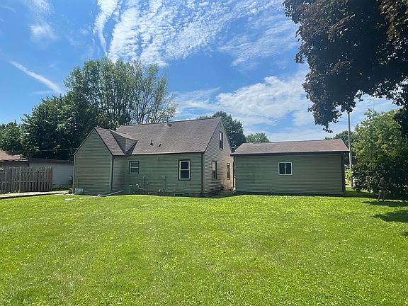 Lots of potential with this property! Large 2-car garage built in 2010, newer electrical panel, vinyl siding and great yard. A total of 1183 square feet featuring 2 bedrooms, 1 bathroom on the main level along with the kitchen, dining and living room. The finished attic has 2 additional bedrooms in a pass-through layout. Selling as-is.