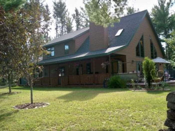 On the outskirts, surrounded by woods This one is a rare find in town. The open concept home looks and feels like you are in the country, without the septic and well problems. The great covered front porch w/wrap around looks out to the dead end road and trees. Upon entering through the front door the 2 story living, dining & kitchen welcome you with openess and sky lights. The west wall w/triangular windows add natural light. Only 10 years old the kitchen has hickory cabinets & tiled floor. The high ceiling is all tongue and groove. There is a master suite up the stairs w/a sitting area, large bedroom, 3/4 bath & tons of storage. 2 additional bedrooms are plenty big along w/a full bath on first floor. A super family storage area for all the things the kids bring home located in the laundry room just off the garage. What more could you ask for. Well there is a full basement sectioned off for a craft room, a work out room and kids play area and more storage To top it off the basement has in floor heat. The downstairs family room which is 28 x 28 also has a walk out to a nicely landscaped back yard and a great entertainment area. 2 car garage & cordwood shed for even more storage what more could you want