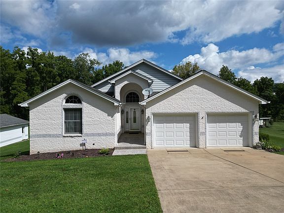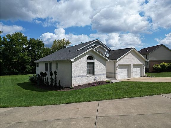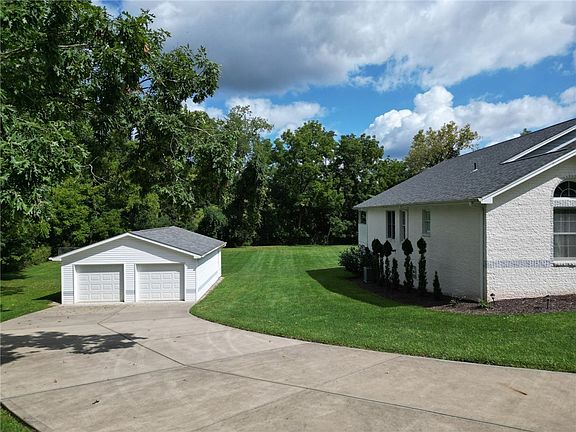Custom-built brick ranch nestled on serene 1-acre lot. This delightful property offers the perfect blend of tranquility & convenience. Open floor plan w/ vaulted ceilings & hardwood floors. Spacious living area is bathed in natural light, creating an open & airy ambiance. Master bath has double sinks, shower & jet tub. Standout feature of this property is the expansive lot. Imagine waking to the sound of birds chirping & enjoying your morning coffee on the covered deck surrounded by nature's beauty. Need add'l space - full basement provides ample room for rec room or in-law suite and already plumbed for a bathroom. Brick exterior adds a touch of timeless elegance & durability to this already remarkable property. Parking will never be an issue w/ 2 car attached garage, 2 car detached garage & garage bay in the back for lawn equipment. Don't miss out on this incredible opportunity to own a piece of serenity & see for yourself why this house is the perfect place to call home!