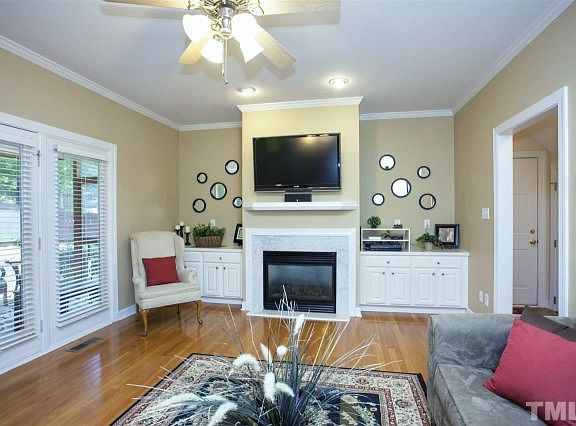 CUTE AS A BUTTON! Won't last long!! MASTER DOWN! Custom Built by local builder. Craftsman style, w/ great features. Master Bath includes JETTED TUB! Family Room contains Built - ins. Lovely wainscot in the dining area. Nice size upstairs bedroom. There is a LOFT/SITTING/WORK area & a SPACIOUS BONUS ROOM! SCREEN PORCH & LOVELY LANDSCAPED, PRIVATE BACKYARD! Two car garage. HUGE ROCKING CHAIR FRONT PORCH! Close to downtown Apex, The Peak of Good Living! WON'T LAST LONG! BE SURE TO SEE IT!! NOW!!!