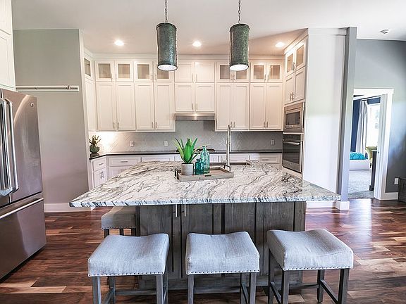 This stunning home sits on almost an acre in one of Edmonds finest gated communities. Here, you'll enjoy a community pool, fishing ponds, walking paths and more! Surrounded by tall, mature trees and beautiful landscaping this home has amazing curb appeal. Designed to entertain, this home has the perfect open concept, an oversized front porch to greet your guests and enjoy sunsets, a sprawling kitchen, living and dining, cathedral ceilings that flow through to the massive back porch and stunning double sided fireplace, bring on the family gatherings! So many custom features and fixtures, this home is gorgeous with stunning character. Other features: Oversized laundry and mud room that connects to the master walk in closet, oversized 3-car garage, huge walk in pantry, enormous bonus/theater room, above ground storm shelter/safe room, every attention to detail was made!