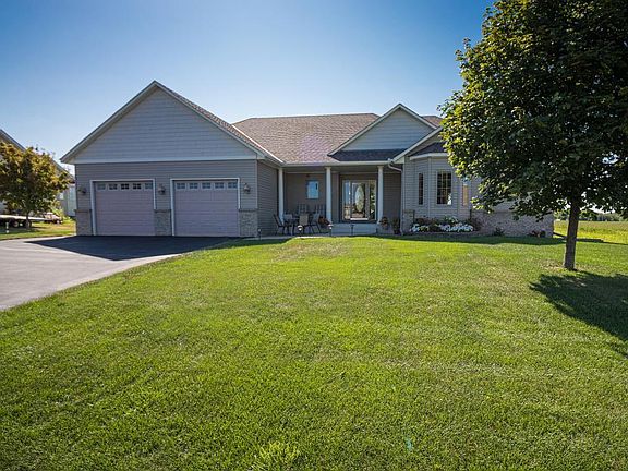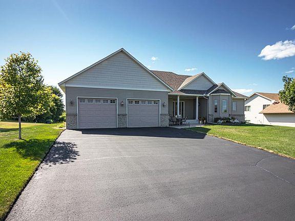 Custom Built Rambler, on a culdesac. Home is completely finished with A LOT of upgrades. Hardwood and ceramic floors, knockdown 9-ft ceilings, 42-inch high low cabinets, main floor laundry, 2 gas fireplaces w/ floor to ceiling brick and stone, built-in book cases, 6-panel doors, whirlpool tub, full kitchen in lower level, 3-stall garage, heated (infrared), epoxy floor, utility sink, sprinkler system, private patio, and a BEAUTIFUL backyard!