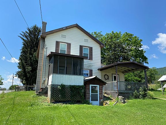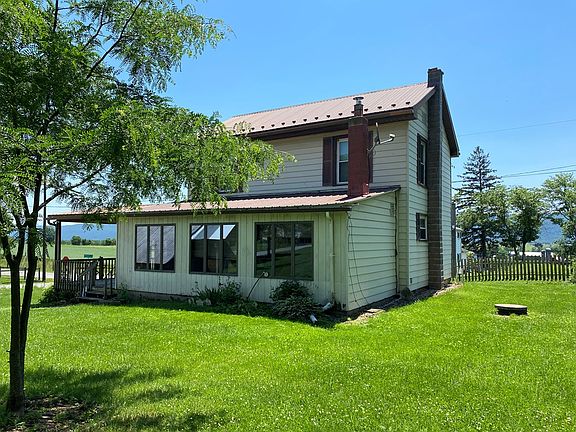 Reedsville 2 story, 4 BR/1BA 1704 sq.ft. home on .72 ac. flat corner lot in the country, forced hot air heat plus wood stove, Community Spring water, on lot septic, , large living room, and 1st fl. bedroom, screened porch with mountain views, lots of space for children to play, or pets/animals to roam. Pole Barn could be enclosed for your farm animals, workshop, extra storage or more, one-car garage and carport. Property sold AS-IS. Owner leaving some of the household furnishings.