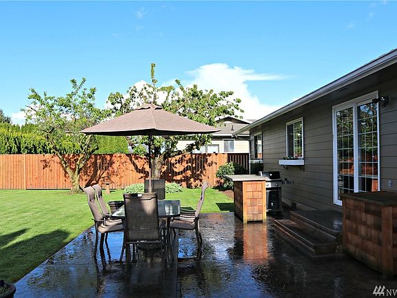 Nice Rambler On West Side of Lynden! Open living room, dining & kitchen area. Newer living room carpet & paint. Laundry off garage with sink, 1/2 bath. Sturdy shelving/work bench in the garage. Spacious fully fenced backyard with raised flower/vegetable garden, fruit trees, beautiful 25'x20' stamped concrete patio, outdoor bar & storage container. Side 11'x7' storage shed. New siding 2 years ago, newer furnace/hot water circulator, electrical outlets/switches. Can't beat the location!
