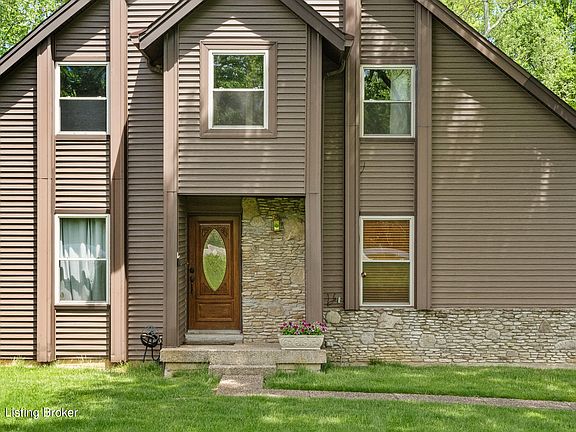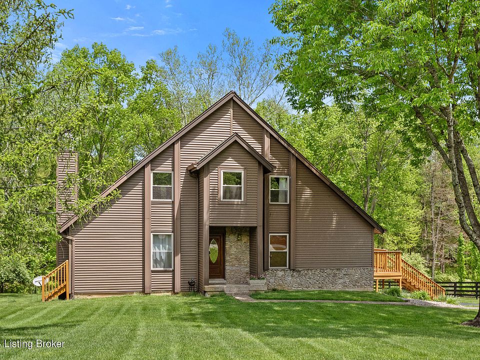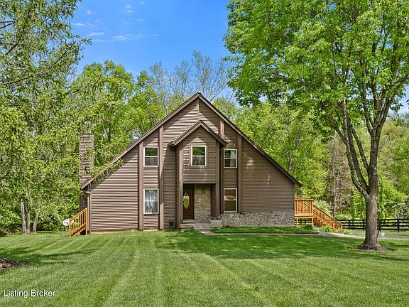 Great opportunity!!! Gorgeous setting in the popular neighborhood of Long Run Woods. Long Run Woods is a very modest size subdivision with tree lined streets and wooded lots. Minutes from Middletown and all of the great retail, restaurants etc. The popular store ''Publix'' is under construction in that area. This listing offers trees in the back and a creek..overall a very nice sized lot. This 1 1/2 story has a contemporary flair. Located in Shelby County but with a Louisville address. Exterior is mostly vinyl siding so little maintenance. As you enter this home you will step inside a vaulted great room with a beamed ceiling. The focal point is the large stone fireplace and hearth. Spacious eat in kitchen that leads to a deck. Two other bedrooms, hall bathroom. Laundry is on the first floo Upstairs is a catwalk with a view of the Great Room. You will find the vaulted Primary Bedroom, vanity area, walk in closet and a shared bathroom (access from hallway as well). Another room that is used for an office lacking a closet. The Lower Level offers a Family Room with an extended area for an all purpose use. A fireplace in the family room as well. French doors lead out to the patio. There is another room that leads to the attached garage. Bears repeating of this lot..lovely and one could add to it in terms of more landscaping etc. Create your own "Garden of Eden". On a dead end street. Driving down Long Run Road you will see homes on acreage, horses, subdivisions of high end homes. Not unusual to see bicyclist on modest to long bike runs. Long Run Park is a few minutes away..offering a lake, playground, picnic areas. Maybe 5 minutes away is one of the entrances to The Parklands of Floyd Fork..please google this. This is one of Kentucky's jewels..acres and acres that have been set aside for nature lovers..canoeing, kayaking, biking, hiking, walking, playgrounds for kids and more. Again please google this for in depth info. All in all this listing offers a lot.
