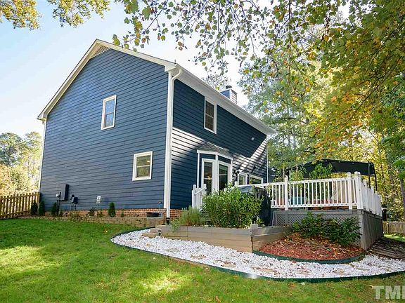 Gorgeous home on cul-de-sac lot that looks onto private wooded area, fenced yard, greenhouse and own personal garden w/ wildlife habitat area. Has oversized deck w/ canopy/solar lights and patio area for grilling. This home features remodeled bathrooms, painted siding, gutter guards, gorgeous light fixtures, barn door to utility room, tile backsplash, beautiful counters, water filtration system, & stainless steel appliances. Open Floor plan. Walking distance to cute Apex downtown area. Great location!
