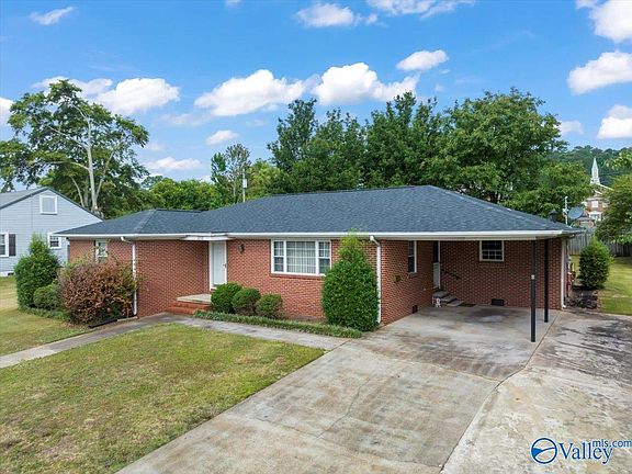 Location, location, location! This full brick 3 bed 2 bath home is right in the heart of Lake Guntersville. Very well maintained home sits on large flat lot with ally access. Tons of story and over 1600 sq ft with 1 car carport. Detached building for additional storage. Convenient to downtown, lake, shopping, and businesses. Very desirable area. New roof with updates throughout to make this home move in ready. New water heater, updated windows as well. Relax out back on the huge deck with tons of shade. Oversized drive makes entering and exiting smooth. Let’s make it happen!