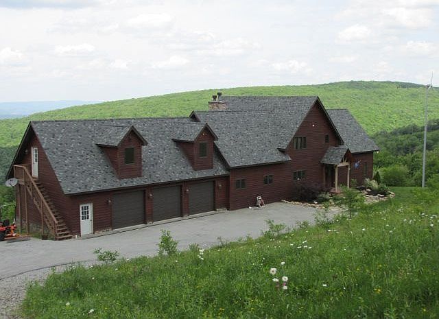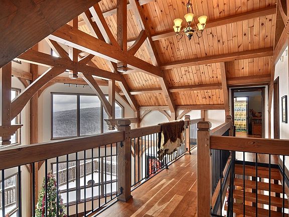 Looking for a fantastic view? You have to see this one! Sitting on almost 11 acres this 5 bedroom Timber Frame home has a large deck to entertain on while taking in the breathtaking panoramic view of the Laurel Highlands. The great room has a wall of windows if you want to cozy up to the fireplace and enjoy. 2 stall stable w/tack room and storage building. Approximately 4 fenced acres around stable. Theater room, family room, gym and much more. Make your appointment to see this wonderful home today! This Two-story Chalet home features Frame exterior, Asphalt roof, 3 car Attached Garage, Hard Wood and Wall to Wall Carpet and Ceramic Tile floors, 3 fireplaces, Electric and Heat Pump heating, Electric cooling, 5 bedrooms, 5 full bathrooms, 2 partial bathrooms