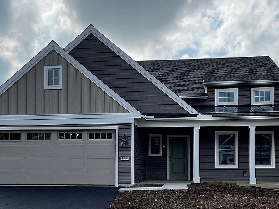 The STANFORD B with BASEMENT in Northgate at Alden Place. STANFORD's one-floor living offers not only a beautiful owner's suite but two additional comfortable bedrooms. This well-thought-out plan showcases both efficiency and delightful open space. You will love the covered porch beyond the vaulted great room as your own personal retreat. Northgate at Alden Place is a 55+ Active Adult Community featuring a 17,000 sq. ft. Clubhouse with an indoor pool, hot tub, fitness center, ballroom, library, billiard room and coffee cafe. Also, the community has a small fishing lake and access to Rails & Trails for walking and biking.