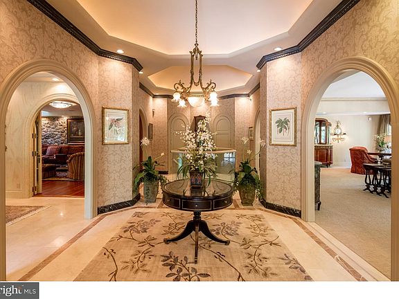 Enjoy Bryn Mawr at its best in a quiet, premium location. Sprawling & grand, this is the most exceptional of any home in the Hermitage community. The elegant interior was custom built by the original owner & completely renovated by the current one. Among the enhancements is all new lighting, custom cabinetry & flooring, window filters to protect furnishings from sun damage, high-quality marble work, a custom master bath, inside access to the 2-car garage w/catering kitchen featuring a wine cooler & double Thermador wall ovens, 3-zone HVAC, tons of closet space & a backup generator powering part of the home. A lovely brick terrace & wraparound deck provide outdoor enjoyment. The grounds are lush with trees, plantings & generous lawn. The Reception Hall likens a fine hotel, graced by marble flooring w/decorative insets, a double domed up-lit ceiling, crown dentil moldings & architecturally-significant arched openings to the living & dining rooms. The expansive living room with a tray ceiling spills through sliding glass doors on 2 exposures to the wraparound deck for indoor-outdoor entertaining. Gather around the fireplace with a granite surround flanked by a custom display cabinet. The dining room provides a sophisticated backdrop w/a medallion tray ceiling, marble flooring, stately columns & 4 arched openings that maximize flow. Siding doors of glass open to the wonderful brick terrace. Seamless living continues with an open-concept kitchen/breakfast area/family room. Cherry floors, furniture-style cabinets, tumbled marble backsplash & granite counters complement a stainless steel Dacor 6-burner propane gas range w/hood, Sub-Zero refrigerator/freezer & Miele dishwasher. A huge center island w/seating is prime real estate for the cook & family, as is the adjacent breakfast area brightened by 3 greenhouse-type windows. Beyond sits a family room w/exposed stone accent wall & built-in entertainment center. A BR suite, now an office/den, offers built-ins, a workstation desk, full bath, closet & terrace doors. Stairs rise to BR suite 2, currently an exercise room w/2 skylights & full bath. A staircase & elevator transport you to the garden level that houses the master suite exclusively. A large BR behind double doors has a wall of windows & lass sliders to the pool area. Custom cabinetry, a gas fireplace, his/hers fitted walk-in closets & bathrooms plus a laundry room accommodate upscale living.