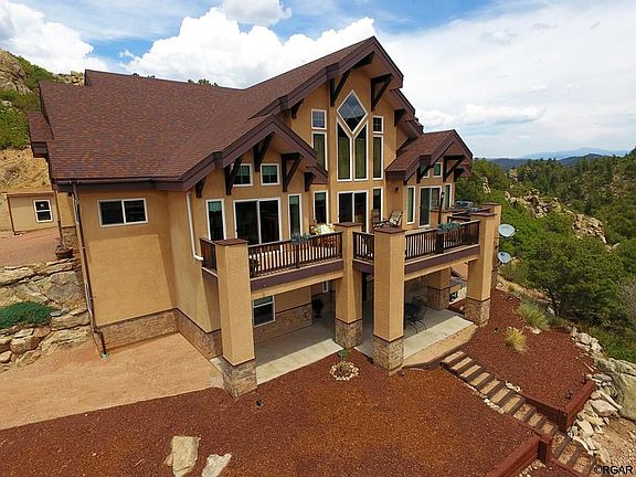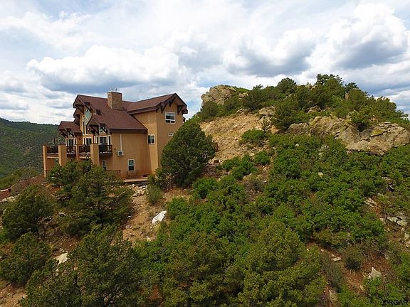 Own a custom home on top of the mountain & enjoy the spectacular views like no other. Completely private 6 bedroom 4 bath home w/ vaulted ceilings throughout the main & upper floors. Tongue & groove ceilings, hardwood floors, low-e windows throughout. Main floor master suite w/vaulted ceiling includes 5 pc bath w/quartz counter, soaker tub & separate walk-n shower plus a large 10'x6' walk-in closet. Most bedrooms have individually controlled heat & a/c units. The large open kitchen features quartz counters, a small nook, breakfast bar, walk-in pantry & all stainless kitchen appliances stay including double wall oven & compactor. The living room offers lots of natural light thru the numerous picture windows, a stone-faced gas fireplace that stretches from floor to ceiling. The same fireplace carries thru to the family room in the walkout basement. Solid wood 2-panel doors throughout. Large main level laundry. The lower level is built with ICF forms, 9' ceiling, a kitchenette off the family room, and plenty of room for guests with a 2nd master suite and 2 additional guest bedrooms. 1500 gal cistern for water reserves, good well, water softener. Tiny home w/bunks set away from house.