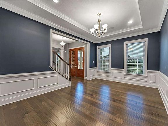 This stunning and modern home is sure to impress! Upon entering, you'll be greeted with double glass doors and an open floor plan. The two story great room and open concept gourmet kitchen with oversized island are the perfect combination for entertaining. The first floor is finished off with a living room, dining room complete with wainscoting and tray ceiling, and private office with french doors. Upstairs you will find a beautiful master suite with tray ceiling, double shower, tub, and THREE walk in closets. Three large bedrooms and two full baths complete the second floor. Move down to the walkout basement and you will discover a bonus room that can be used as a 5th bedroom, a bar with wine cooler, and BEST of all - a full movie theater complete with 4k projector and drop down screen! Last, but not least, the home includes a whole house audio system where the speakers, lights, thermostats, alarm system and even TV's can all be controlled from your phone or ipad.
