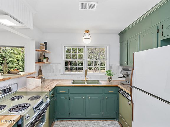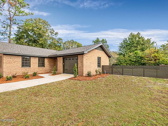 Enjoy a beautifully designed modern mid-century fully renovated ranch with custom finishes. This full brick home sits on an expansive lot complimented with trees for privacy in the backyard. Easily entertain guests with an open floor plan that features luxury LVP floors, a wood-burning fireplace, and warmly paneled walls that open into the designer kitchen with a beautifully tiled backsplash. No HOA fees. Minutes from the airport, downtown, shopping, and beach. Custom-designed renovated homes do not last long in Wilmington so do not wait to schedule a showing!