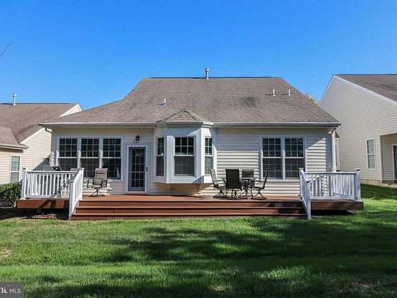 Single Family Ranch in very desirable Active Adult Community Heritage Creek. This Revere model 2 Bedroom plus a den. Kitchen with granite countertops, Pantry. Engineered wood flooring throughout entire home. Master Suite with walk in closet and full bathroom with walk-in shower and deep soaking bathtub. Second bedroom with large closets, Living room Dining room combo, nicely sized den with glass french doors. Laundry room, 2-car garage. Newer Deck runs entire length of house. Wooded backyard with lots of privacy. Updates include Hot Water Heater, Washer and Dryer, Appliances (Refrigerator, Stove, Double Oven, Dishwasher, Microwave), Citadel Security System, Closets Customized by Closet Woodworks, Windows by Anderson, Front Door, Back Door, Storm Door, Interior recently painted.