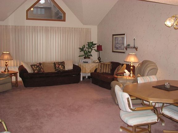 A single level layout and a convenient location near the golf course, downtown, and dining make this an excellent choice! Come take a look and be delighted by the open layout of the kitchen, dining room, and living room. A vaulted ceiling soars above the living room and a large transom showers the space with great light. From the living room you can step out onto the semi-private back patio. Both bedrooms are spacious and provide ample closet storage. The master bedroom includes a private bathroom with tub/shower. For convenience, the hall laundry comes equipped with washer & dryer and the exterior maintenance of the home are handled by the HOA services.