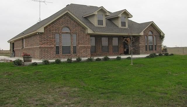This property sits on a hill, overlooking north Wise County. Pipe fencing surrounds the front pasture. Inside the home, the living room has a WBFP with gas starter and a built-in entertainment center. To round out the kitchen amenities, it has cherry cabinetry, an eating bar, built-in desk and open floor plan. The bedrooms consist of the master and two split bedrooms. The master bath has a walk-in closet, double vanities, jetted tub and a separate shower. Ceramic tile is in the baths and utility. In the backyard, there is a stamped concrete patio with an attached sand pad for a 16 ft above ground pool. The patio has been reinforced for an outdoor kitchen and also for a fire pit. The 30x40 shop is insulated, has electricity and is wired for electric garage door openers. The 12x12 wellhouse is insulted and was built to aid in case the well ever needs to be repaired. On the back side of the well house, is another enclosed 18x12 area for extra storage for yard tools. The Sellers raised three heads of cattle with enough grass for all. All of this sits on 10+ acres.