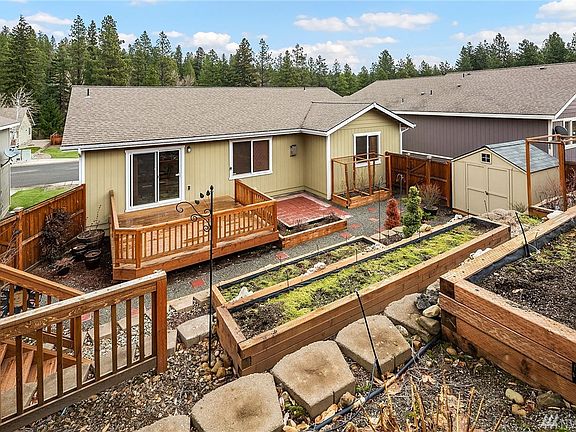 Immaculate condition, newer, one-owner home in Cle Elum Pines. Spacious open floor plan w/vaulted ceilings, living room w gas fireplace, dining area, kitchen & eating bar. Oversized Master suite with a view, master bath w dual sinks + 2 additional bedrooms on the main level. Basement includes another bedroom, 3/4 bath, large rec room & bonus room. Enjoy outdoor living with deck, patio and terraced yard.Nicely landscaped with low maintenance raised beds w/drip irrigation and 2 storage sheds.