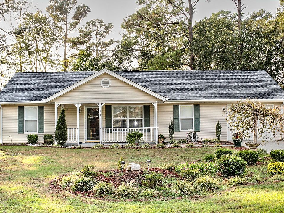 Adorable and Affordable! 3 Bedroom 2 bath home nestled away in Calabash Acres with NO HOA fees! Split floor plan, tile flooring, laminate flooring, garage, outside storage building, concrete driveway. Grab your beach chairs and flip flops being only minutes from Sunset Beach! Sit outside on the screened porch or grill on the nice deck let the dogs or children roam freely in the privately fenced back yard.