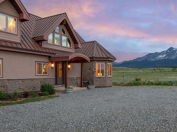 Nestled on 9 acres just 15 miles from Telluride, this elevated retreat borders Open Space and delivers big mountain views from its bluff location, ideal for maximum privacy and serenity. Inside the 3-bed main house, you'll find comfort and refinement in every corner with a design that blends warmth with sophistication. The open living spaces with vaulted ceilings are the ideal spot to recount the days adventures in front of the fireplace, while the spacious kitchen was crafted for entertaining. Whether it's morning coffee or evenings beneath starlit skies, nearly every window frames a stunning Colorado backdrop. A 1-bed guest house rests above an oversized, heated 2-car garage, perfect for visitors or flexible living. More than a home--it's a front row seat to the grandeur of the Rockies.