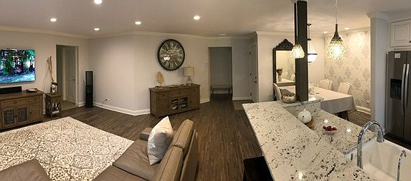 Large and elegant three-bedroom, two baths completely remodeled condo with open concept floor plan. Spacious, eating kitchen area with large granite breakfast bar great for entertaining, custom 42" cabinets, granite countertops, farmer sink with deluxe faucet and special drinking water filtration system, and high-end stainless steel kitchen appliances. All windows and patio doors throughout the apartment are new. The entire unit has a custom can light system and ceiling light fixtures in all bedrooms. The laundry room has an energy-efficient front-load full-size LG washer and dryer. New hardwood floors were installed throughout the kitchen, dining and living room. Both bathrooms have heated floors. The spacious master bathroom has a rain shower with GROHE faucets, marble tiles, and custom vanity sink. The second bath has a new cast iron bath, GROHE faucets, and natural tile stone tiles. The adorable private patio area has two entries one from the kitchen area the other one from the living room. Attached one car garage plus plenty of additional parking space on the driveway and the street.