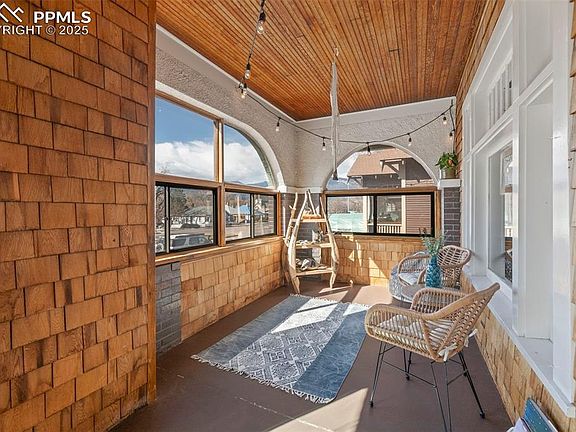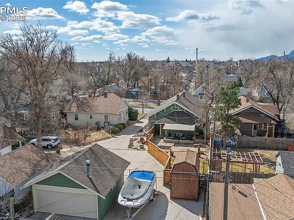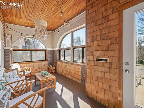 This stunning downtown bungalow is packed with charm and character, showcasing original details like a built-in China hutch, elegant bookcases, and majestic wood columns in the living and dining areas. The updated kitchen features granite counters, ample cabinet space. and stainless-steel appliances, all under five years old. The beautifully remodeled mudroom, freshly painted and updated, adds extra style and functionality. Step outside to a fully fenced backyard retreat with a covered concrete deck perfect for entertaining. A hot tub pad is already in place, and the manicured lawn is maintained with a sprinkler system. A charming outbuilding with insulation, electricity and a stunning chandelier offers a private space for an office, studio or creative retreat. The upgraded garage features front and rear doors for a drive through design, plus a lift for a removable hardtop. a concrete pad accommodates a boat, RV or up to eight vehicles. Inside three spacious bedrooms provide ample closet space with additional built-in storage in the hallway. Beautiful hardwood floors run throughout the main living areas, and the recently updated bathroom adds a modern touch. The sunroom spanning the width of the home, is the perfect place to take in the beauty of downtown. The basement includes a washer and dryer, both under five years old, and a water heater installed within the last four years. The home is heated with an efficient boiler system, but also has natural gas availability and the rare bonus of central AC. Great one level living. With a large, walkout basement, and spacious attic, this home offers incredible expansion potential perfect for adding a master suite or extra living space. A true downtown gem, this bungalow blends timeless beauty with modern updates and endless possibilities. Near parks, trails, hospital, and vibrant downtown Colorado Springs with endless activities, restaurants, clubs, Pikes Peak Center, Switchbacks, CC hockey and more! Assumable.