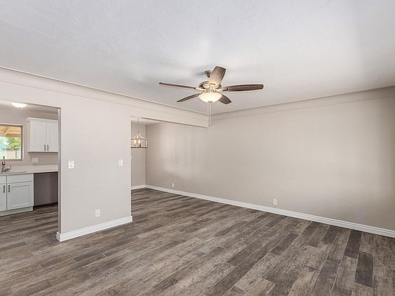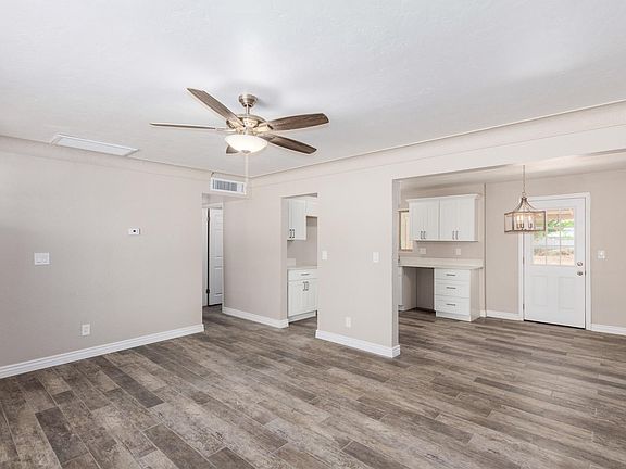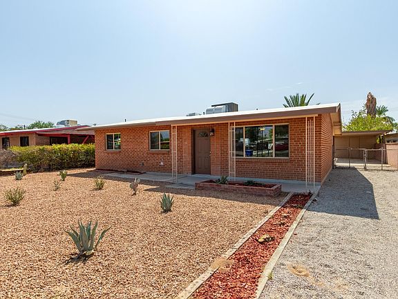 Take a tour inside this beautifully Remodeled Red Brick Ranch Home w/pristine desert landscape. Open floor plan, handsome wood ''look'' tiled floors, welcoming palette, new ceiling fans, & new baseboards. Stunning new eat-in kitchen features new quartz counters, & new white cabinetry w/hardware. Seller will provide new SS appliances including smooth top electric range, OTR microwave. and dishwasher prior to closing. Perfect starter home or Investment Property. New plush carpet/padding in all bedrooms, large closets, & 2 new upscale baths. New designer tile, fixtures, & mirrors. The backyard boasts brick fireplace in need of some TLC, covered patio, & plenty of parking. Will not disappoint! Agent/Owner