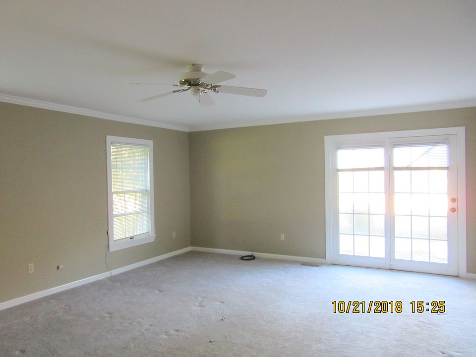 Lovely painted brick and stone ranch home in prestigious Fairmount Farms. New roof in 2018, all new exterior paint. Three-four bedrooms, three full baths, kitchen/family room open floor plan with a stone fireplace w/built in cabinetry, spacious kitchen, island seating, formal dining room/living room and sun room, concrete patio, quaint front porch. Large lot on the cul de sac, nice pine tree buffer is on the adjoining property. Huge master suite with French door leading to the patio area,large walk in closet/newly updated bath. The fourth bedroom could be an individualized suite, with walk in closet and full bath in the hallway. Beautiful hardwood flooring in the kitchen, family room, foyer and main hallway. Carpeted bedrooms. Possession at closing, make this your forever home.