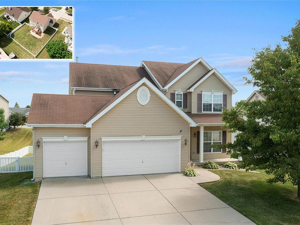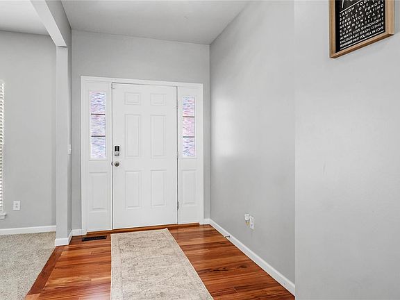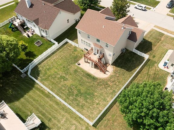 Beautiful 2 story home in Wild Horse Meadows boasting 4 bedrooms, 3 baths, 3 car garage and right down the road from the coveted Wolf Branch School Dist. Brazilian hardwood flooring through the foyer and into formal dining, kitchen and breakfast room {w/ deck access}. Main level features both living and family room {w/ gas fireplace, abundance of natural light} providing open line of sight into spacious kitchen {SS appliances, center island, 42" cabinets and pantry}. Main level laundry and powder room complete the main level. Open scissor staircase to upper level you'll find 3 well appointed guest bedrooms {all w/ walk-in closets}, full bath, and primary suite {vaulted ceilings, walk in closet, and 5 piece en-suite}. Full unfinished lookout basement {plumbed for bath} is waiting for your vision to come to life. Deck off breakfast nook provides stairs down to the custom, stamped, concrete patio and fenced backyard.