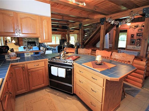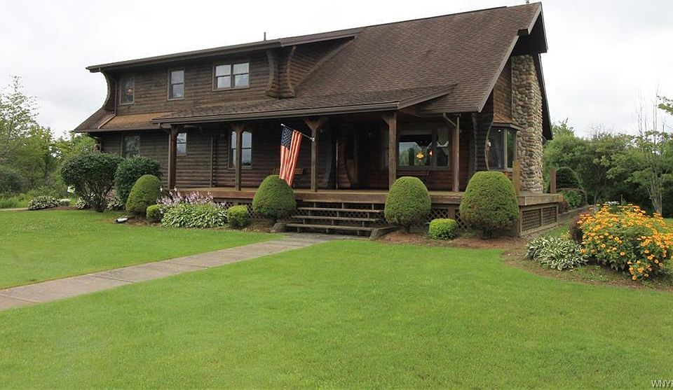 Tucked back from the road on 12 country acres, this Lovely log home has so much to offer! You will love the large open livingroom with beautiful beams, fireplace, and view of open stairway to loft. Spacious master bedroom/bath with Jacuzzi and door to upper balcony. Great kitchen has plenty of cabinets, center island/breakfast bar and is open to dining room. First floor laundry, full basement can give additional sq. ft for family room/rec room and extra storage. Enjoy the wooded backyard, open front porch, storage shed, and economical Arcade electric. Additional 6 acres could be purchased if more land is desired.
