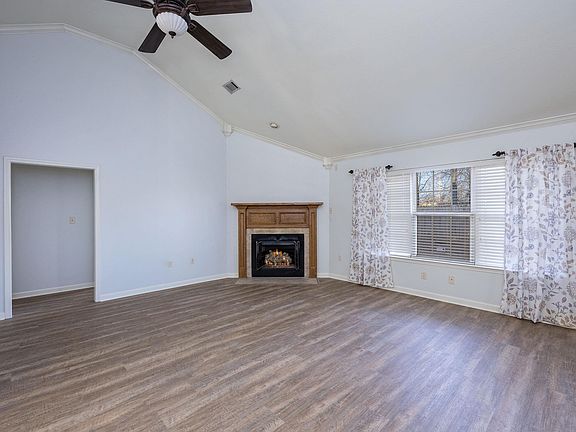 One level, move-in ready Cabot home. Spacious living area with a vaulted ceiling and gas fireplace opens to kitchen with eat-in area, pantry, island and new stainless steel appliances (2022). New LVP flooring installed throughout main living areas & guest bath, new carpet in bedrooms and interior was freshly painted in 2024. Other recent improvements include new roof (2022), HVAC (2021), water heater (2020) and more! Low-maintenance exterior features a covered front porch, large back deck, above-ground pool along with dawn-to-dusk soffit lights added in 2023. Oversized laundry w/ sink. Two-car garage has additional storage space/backyard access.