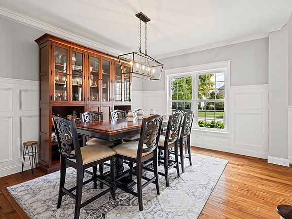 This is the one you've been waiting for! Largest Coves model nestled on a quiet drive in coveted Huntley D158 is an absolute must-see! This stately brick-facade home sits on a nearly half-acre fenced lot with mature trees, brick paver patio, and manicured lawn with perimeter mulched berms & screen trees. You are welcomed by a hardwood foyer flanked by a sun-filled living room, an elegant wainscoted dining room, and two-tone main staircase. The expanded gourmet kitchen is ideal for entertaining or family gatherings and features custom cabinets, granite ctops, walk-in pantry, coffee/ wet bar with beverage cooler, grand island, RO water, solar shades, and SS appliances (side by side fridge/ freezer, dual fuel double oven, chef's hood). Off the kitchen is a custom-finished mudroom w/ sink, an office/ craft room, and a cozy sunroom with a 3-panel slider to the quaint tree-shaded patio. The large family room with turret bump-out offers a coffered ceiling, gas-log fireplace, carpet inlay, and a carpeted secondary staircase to upper level. Upstairs the primary suite features a spa-like bathroom with heated tile floors, split vanities, beauty counter, marble rainshower w/ body jets, soaker tub, and his-and-hers walk-in closets. A sitting room off the vaulted bedroom offers additional closet space and flexibility as an office, dressing room, nursery, or even a 6th bedroom! The upper level continues with three more bedrooms served by Jack-and-Jill and ensuite full baths, a hall linen closet, and a practical 2nd floor laundry room loaded with cabinets & hanging racks, corian ctops, and a double sink. The lower level is designed for recreation and entertaining with wool carpeted stairs, a spacious recreation room, exercise room, kitchenette/ wet bar with cooler & microwave, and a media room, guest bedroom, full bath w/ heated tile, a full workshop with base cabs/ ctop, and 3 separate storage areas with built-in shelving. Additional features: Extra depth heated 3-car garage w/ storage cabinets, new garage door openers w/ battery backup, attic w/ pull down stair, crown molding & wood blinds throughout, solar attic fan, dual furnaces/ AC, gas hookup to patio, raised bed garden, screened porch addition plans (stamped for permit).