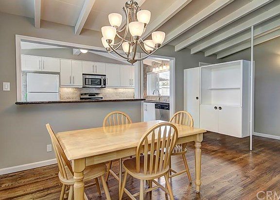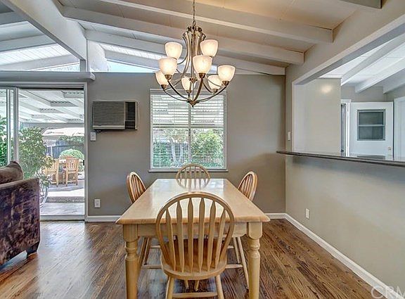 Here is a charming mid century modern bungalow on a nice tree-lined street in the heart of what's happening near the Main Place mall and Floral Park. Vaulted Ceilings with exposed beams greet you as you enter this beautiful home. All of the original character was preserved throughout this remodel. There's a cozy fireplace overlooking the huge backyard and covered patio begging you to invite guests over and entertain and play on the huge lawn. The warm refinished real hardwood floors accent the totally remodeled and expanded kitchen with extensive use of stone finishes, granite counters and stone backsplash, new range, new dishwasher and sink including and all new cabinets. There's a nice view of the front yard and street from kitchen window. In the two car garage there's lots of storage and washer/dryer hook ups. Great Northeast Santa Ana location. See Virtual Tour.