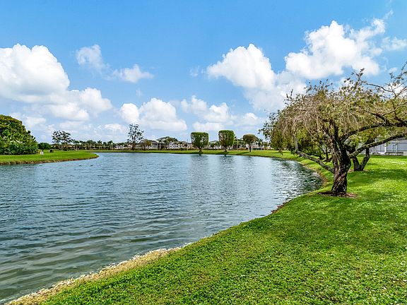 This lovely condo is situated in the highly sought-after Century Village Active Adult Community. The ground-floor unit is located in an incredibly peaceful location and offers a stunning view of the lake. The kitchen has been updated with granite countertops, backsplash, wooden cabinets, and all the necessary appliances. Both bedrooms have a beautiful lake view and are fitted with laminate flooring. One of the bedrooms has a walk-in closet, while the other has a more oversized closet and an entrance to the patio. The main bathroom has a shower stall, and both bathrooms have newer toilets. The patio is tiled and has an additional door leading outside the unit. There are storm shutters for protection and extra storage space that complements the breathtaking view of the lake. The screened-in patio is spacious and perfect for seating, dining, and entertaining. Residents can enjoy first-class amenities, including a fitness center in the expansive clubhouse, social spaces, a performance theater, and more. Outdoor amenities include 12 tennis courts, 12 shuffleboards, and pickleball courts.