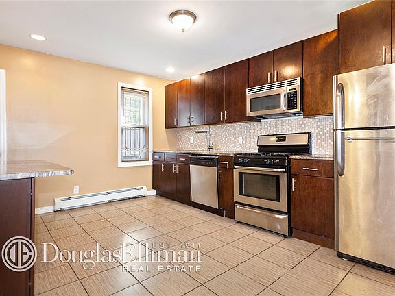 **NO BROKER FEE**One block from the "J" subway line, a gut renovated, three bedroom, 1.5 bath DUPLEX awaits a very fortunate new occupant. Maintained with love and care, this gem offers an IN-UNIT WASHER/DRYER, and a MASSIVE, PRIVATE BACKYARD equipped with a COMPLIMENTARY BBQ GRILL. There are TWO SEPARATE ENTRANCES into this fabulous abode. The garden level features a separate entrance, half bath, and an open kitchen with stainless steel appliances, including a DISHWASHER. The parlor level entrance invites you into the sleeping areas where there are THREE TRUE BEDROOMS and one full bathroom. Two of the bedrooms will comfortably accommodate a KING SIZED BED, each with its own GIGANTIC CLOSET. The third bedroom will accommodate a full sized bed. This two family townhouse was gut renovated in 2010, and offers all the contemporary appeal you desire, with a hint of prewar charm as well. The apartment is equipped with an alarm system, and exclusive access to the basement for additional storage! This home is one block away from a Key Food, Rite Aid, and many other conveniences. HEAT, HOT WATER, AND GAS ARE INCLUDED IN THE RENT. Your commute to Manhattan is a breeze!