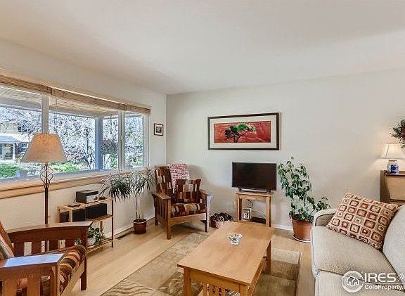 This house will welcome you home from the minute you step on the covered front porch. Turn around and admire the views of the Flatirons! Inside this charming home are beautiful hardwood floors, a remodeled kitchen with ample storage and quartz countertops, remodeled baths and a finished basement. The indoor/outdoor connection continues to the 26 x 16 Trex deck and landscaping designed for privacy, year around color and ease of maintenance. Newer doors, windows, carpeting, Hardie plank siding, and a brand new Lochinvar on demand boiler for hot water and heat. Mini Split A/C and an Evaporative Cooler for comfort. Check out the wall of storage built into the family room. This house is in the sought after Table Mesa area of Boulder and you can choose between two great Elementary Schools.