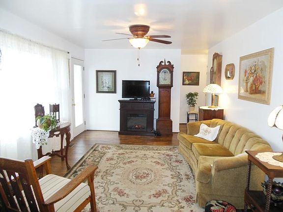 Neat 4 bedroom home with a .75 acre edge-of-town location. Recently updated with new wiring, plumbing and central heat and air. Hardwood floors throughout the house. Built-in shelves and 4x8 pantry in kitchen. Jacuzzi tub in the master bedroom. Loads of storage space in the 23x29 unfinished walkout basement. 8x12 patio. 20x24 detached garage with 220 electric and concrete floor. 10x20 shop with electric and 7x8 double doors.