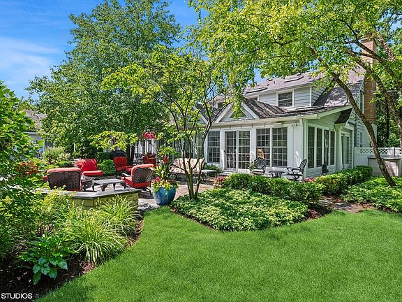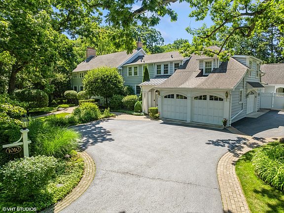 Walk to Hubbard Woods from this traditional cedar shake-style home on a spectacular .82 ACRE . Longtime homeowners recently added 1st FLOOR PRIMARY SUITE and UPDATED KITCHEN. Well-scaled formal living room and dining room. Updated white kitchen in 2023 with island opens to family room with vaulted ceiling, built-ins and wet bar. Expansive all-season sun room offers southern exposure overlooking spectacular landscape and gardens. Primary suite with vaulted ceiling and 2-way gas fireplace to cozy sitting room. Suite also features his-hers walk-in closets and bath w/marble and white cabinetry. 1st floor office and laundry. The 2nd floor features: bedroom #2 (original MBR) with WIC and full bath, bedroom #3 with ensuite bath, a bonus room/office with built-ins, murphy bed and adjacent bath, and Bedrooms #4 and 5 sharing another hall bath and accessible from back staircase. Basement is finished with paneling and new carpet. 3+ car garage, irrigation and security. Great location east of Green Bay Rd yet a short walk to train, beach, restaurants and shops.