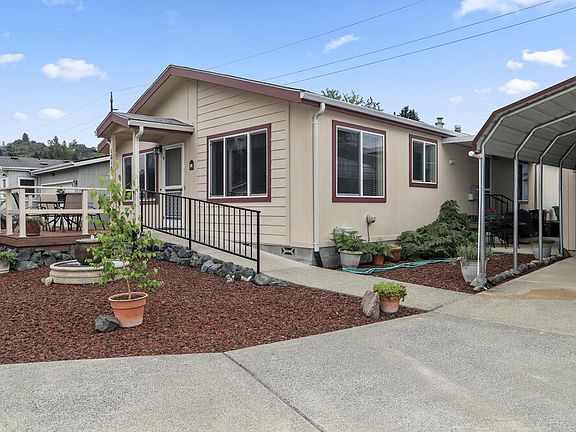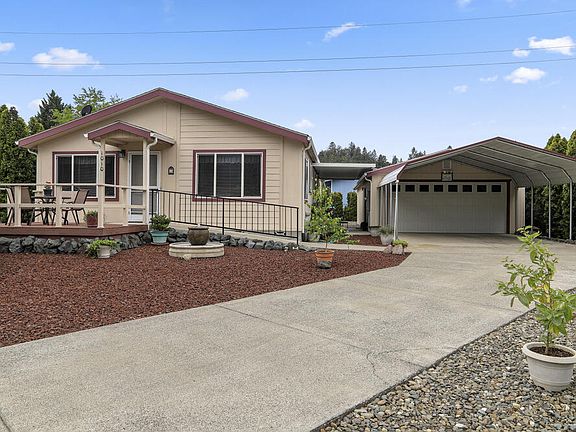 Affordable and super clean home on a cul-de-sac in quiet neighborhood! This 1404 sq ft double wide has much to offer including an open floor plan, easy maintenance landscaping on large lot, and finished workshop attached to the 2-car garage! The vaulted ceilings add to the spacious ambience of the main living area. The kitchen is light and bright with stone floors, oak cabinets, and a great pantry! Outside, enjoy relaxing out on your front porch or tinkering in the workshop! The backyard has plenty of room for a garden or your pets. There is even a storage shed and carport. Schedule your tour today, as this one won't last long at this price!