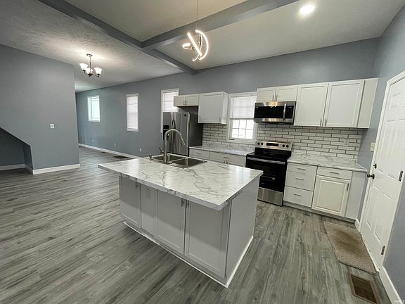 Enjoy all the luxuries of a new built home without the price tag! This home has been completely remodeled from top to bottom. The large front porch welcomes you to the front door with plenty of room for a porch swing and outdoor entertaining space. In the living room you'll find 10ft ceilings, brand new flooring and a decorative fireplace with an outlet to mount your tv! The open concept flow leads you to the gorgeous kitchen and dining area. Enjoy all new stainless steel appliances with timeless subway tile backsplash. The large kitchen island is complete with storage, an outlet, and seating for two! The main floor bathroom has a fully tiled tub surround. Both bedrooms on the main floor have brand new carpet and great sized closets. Upstairs is a large bedroom with a separate a/c unit and thermostat for optimal comfort, and another full bathroom with gorgeously tiled shower. The basement has lots of natural light with fresh paint, new water heater, and furnace.