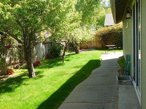 Open floor plan, with high ceilings. Breakfast bar in kitchen with granite counter tops and stainless steel appliances. Large master bedroom with attached bathroom. Bright and cheerful dining room. Back yard has fruit trees. Home is located at the end of a quiet cul-de-sac in a great school district.