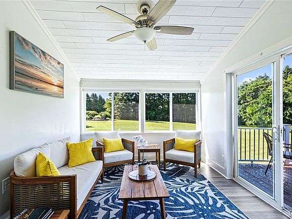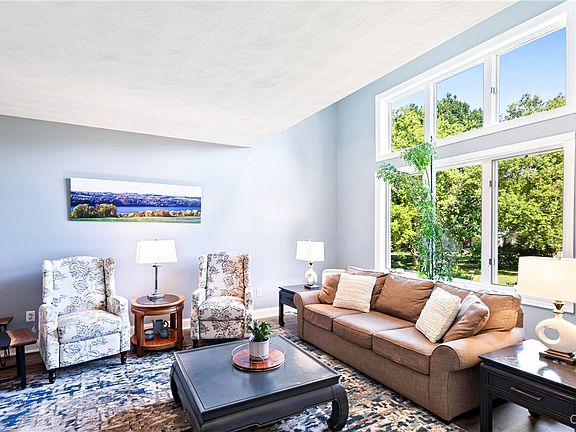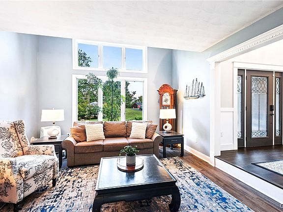 Nestled on 5.83 private acres with stunning park-like grounds, this exceptional 3,550 square foot home at 1010 Jewett Road offers space and comfort. This impressive 5-bedroom, 4.5-bathroom residence features a primary suite on both the first and second floors, each with luxurious amenities including expansive bathrooms and walk-in closets. The thoughtfully designed layout includes a great room, sun room/3-season room with adjoining deck, finished walk-out basement with office, recreation room, and gym, plus a convenient first-floor laundry room. The gourmet kitchen boasts a pantry, wine fridge, wet bar, and Z-line gas range, while three gas fireplaces provide warmth throughout. Additional highlights include a three-car garage and outdoor entertaining spaces with a pavilion, firepit area, tranquil koi pond, and mature pines creating natural privacy. The property is enhanced by a remarkable 36x48 barn featuring a heated 20x36 shop with radiant heat, 10-foot ceilings, and full insulation - ideal for woodworking or advanced hobbies. With the convenience of public water and natural gas service, this home combines luxury with practicality. Located in the desirable Skaneateles school district, this retreat offers both privacy and convenience, sitting just 1.5 miles from the village center and 1.1 miles from the school campus.