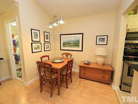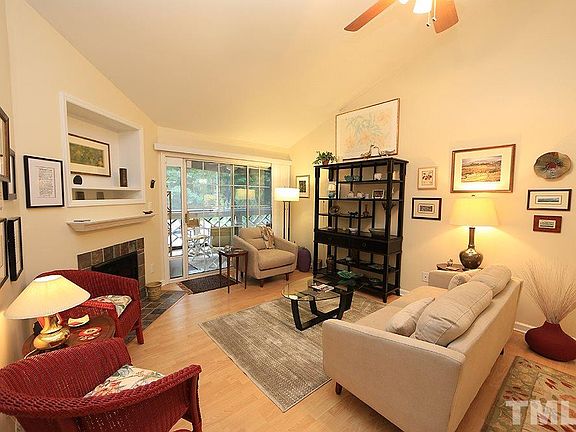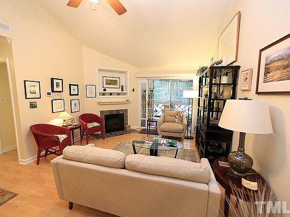 Beautiful top level condominium in Downing Creek subdivision very close to UNC & downtown Chapel Hill! Living room features cathedral ceilings, fireplace, and access to screened deck, upgraded kitchen w/granite countertops/raised panel cabinets/stainless appliances/tile floors, separate dining area, bedrooms have private bathrooms, storage/laundry room w/extra shelving! New interior paint, new HVAC system, light laminate flooring. Unit feels like a treehouse w/lots of hardwood trees around! A Must See!